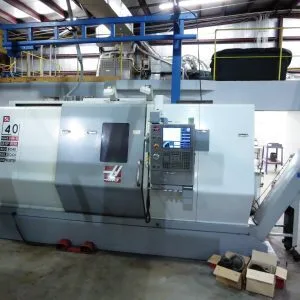 - 2007 HAAS SL-40TB, CHUCK SIZE: 18″, MAXIMUM TURNING DIAMETER: 25.5″, MAXIMUM TURNING LENGTH: 44″, CENTER BETWEEN DISTANCE 51″, MAXIMUM BAR CAPACITY: 7″, SPINDLE BORE: 7.08″, SPINDLE MOTOR: 55 HP, SPINDLE SPEEDS: 1,400 RPM, SPINDLE NOSE: A2-11, TURRET POSITIONS: 10, 2-SPEED GEARBOX, PROGRAMMABLE TAILSTOCK, EXTENDED TOOL POCKET, TOOL PRESETTER, CHIP CONVEYOR, HIGH-PRESSURE 300 PSI COOLANT SYSTEM, HIGH-INTENSITY LIGHTING, REMOTE JOG HANDLE, INTUITIVE PROGRAMMING SYSTEM, SPINDLE ORIENTATION, S/N 3076668, SPINDLE TIME: 7,084 HOURS ONLY