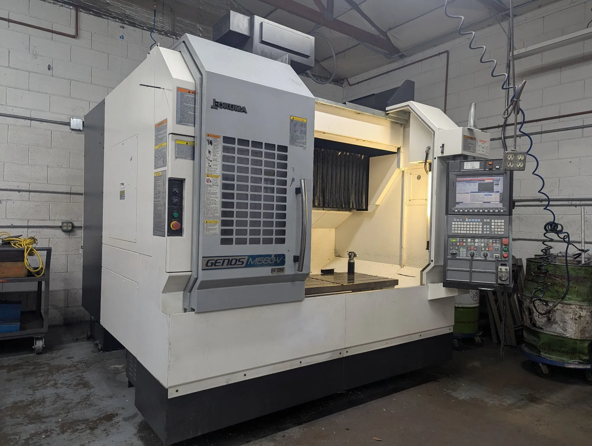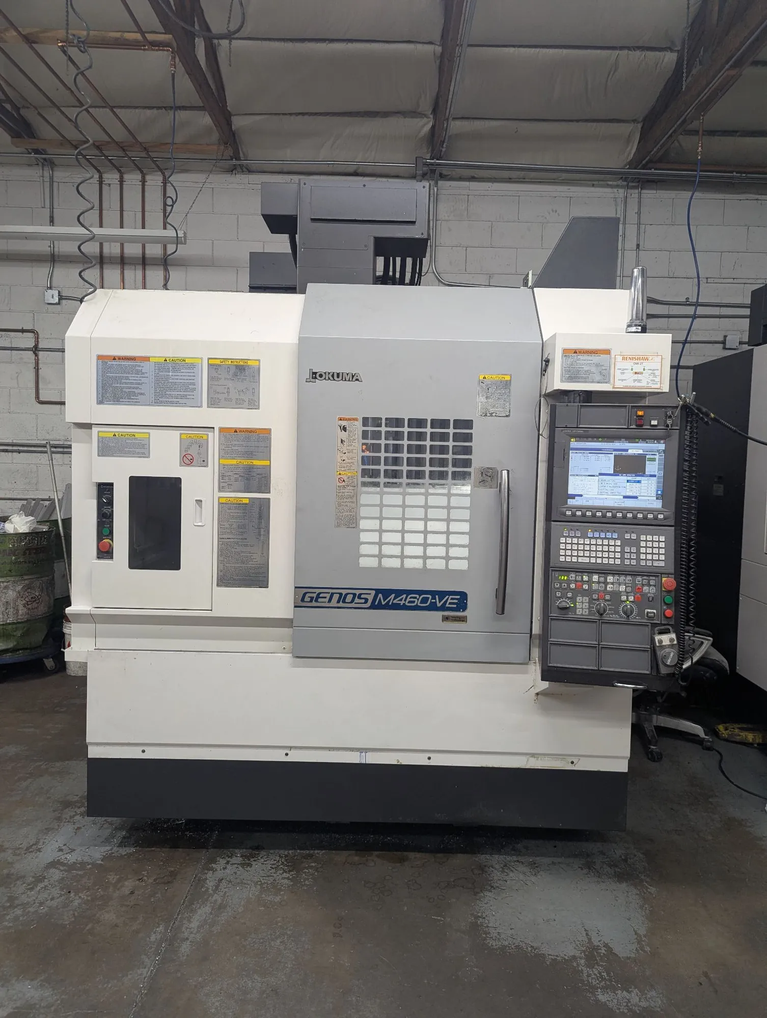 2018 OKUMA GENOS M460-VE CNC VERTICAL MACHINING CENTER, S/N 215733, OSP-P300MA INTUITUVE TOUCH SCREEN CONTROL, 15,000 RPM SPINDLE, 32 ATC, CAT40, ***CUTTING HOURS 5562*** DAIKIN INVERTER, RENISHAW PROBING SYSTEM WITH TOOL SETTER, DUAL AUGER, LNS TURBO CHIP CONVEYOR MODEL 57509315, S/N 13575010091