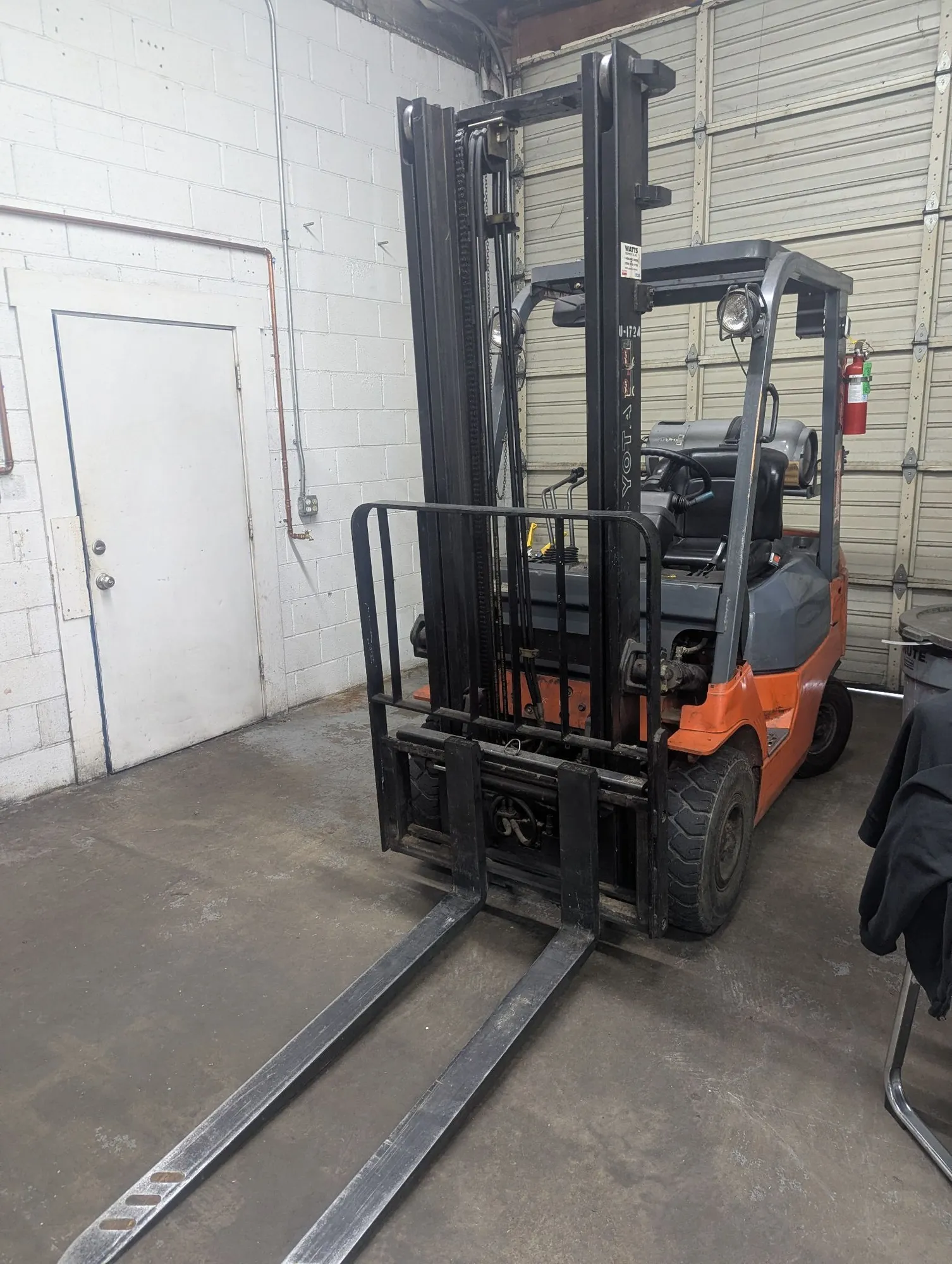 TOYOTA MODEL 7FGU15 FORK TRUCK, S/N 60890, 3000 LB CAPACITY,GAS, SIDE SHIFT, SOLID TIRES, FORK EXTENSIONS, FORK ATTACHMENTS