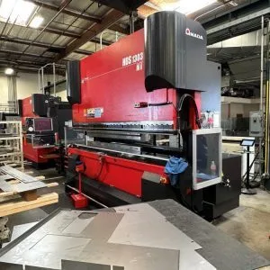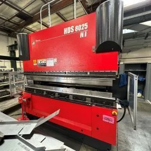 2012 AMADA HDS-8025, 88 TON, 101” BENDING LENGTH, 83.5” BETWEEN UP RIGHTS, AMADA AMNC-PC-7-AXIS CONTROL, 5-AXIS PROGRAMMABLE BACKGAUGE, PUNCH AND DIE LIBRARY, 15” TOUCHSCREEN DISPLAY.
