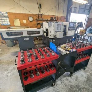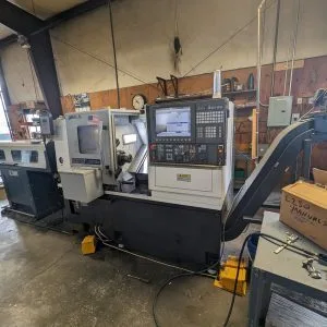 - OKUMA LB9 CNC LATHE, PROGRAMMABLE TAILSTOCK, CHIP CONVEYOR
