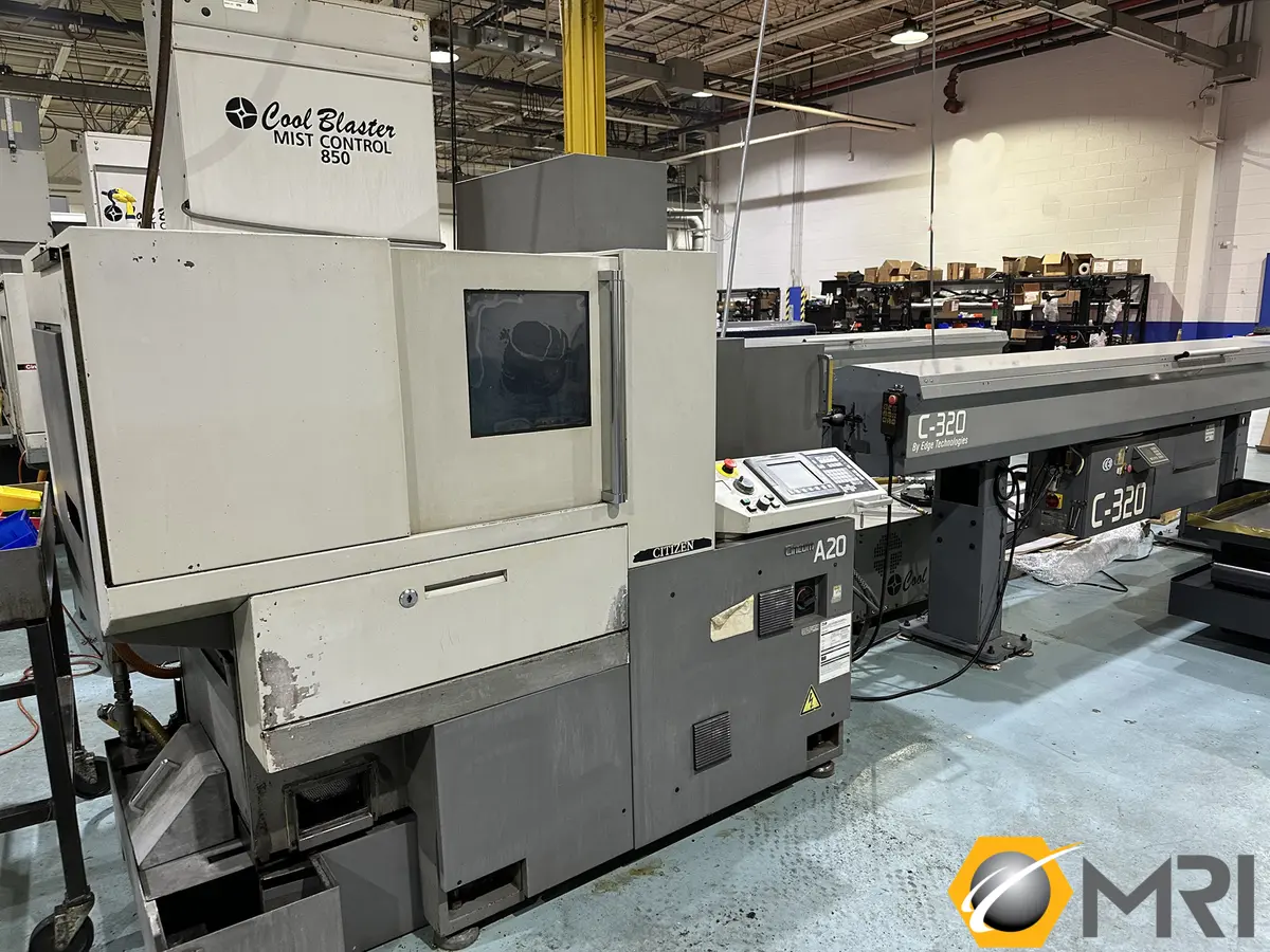 Used 2010 Citizen A20VII CNC Swiss Lathe for sale. 0.75" (20mm) Capacity with 6 Turning Tools, 4 Rotary Tools, Full C-Axis, Sub-Spindle & Independent Back Working. Fanuc 32i CNC Control, Mist Collector, High Pressure Coolant System, Magazine Bar Feed.