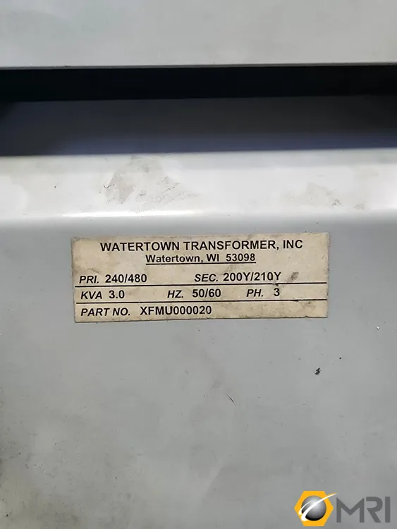 WATERTOWN XFMU000020 3KVA 240/480 3-Phase, 60-Cycle, Dry Type Transformer, New 2021, in used/excellent condition. Ideal for industrial settings requiring reliable power management. Compact and efficient for various electrical applications.