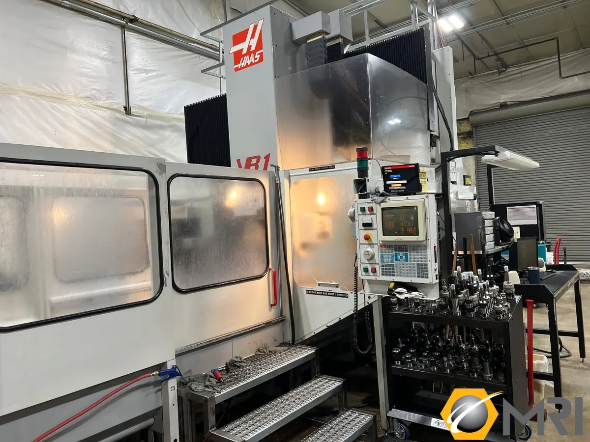 The Haas VB-1 5-axis contour vertical gantry milling center is a cost-effective solution for large-scale 5-axis contour machining. Its standard travel is 200" x 84" x 40" (5,080 mm x 2,134 mm x 1,016 mm), with a column distance of 72" (1,829 mm). It features a fully enclosed universal joint design on the HSK A63 tapered spindle, while providing 120º B-axis travel and 200º C-axis travel. Additionally, The 30hp cooled spindle features a vector drive, ensuring optimal performance across the entire speed range of 0-15,000 rpm. The standard VB-1 also includes a spiral chip conveyor, rigid tapping, remote control handwheel, second Home button.