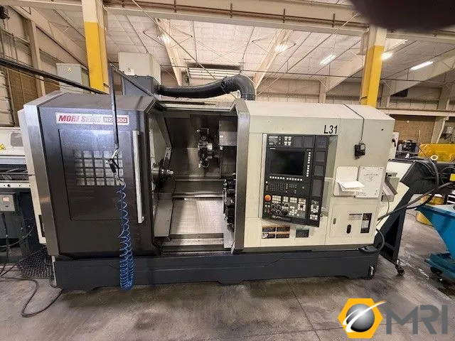 2008 MORI SEIKI NZX2000/800T2Y2 CNC Lathe, 3-axis, 31.5" swing, 31.8" length, 8" chucks, 25HP spindle, 5000 RPM, 12,000 RPM live tool speed, barfeed interface, chip conveyor. Machine weight: 21,120 lbs, dimensions: 199.3" x 111.6" x 91.3".