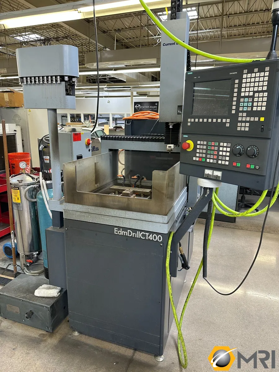 The Current EDM EdmDrill™ CT400 is a high-precision, mid-size CNC EDM drilling machine designed for versatile, high-capacity, and automated drilling in aerospace, medical, and tool & die industries. Available in 3-5 axis configurations, it features a moving bridge, a 1,000 lbs table capacity.